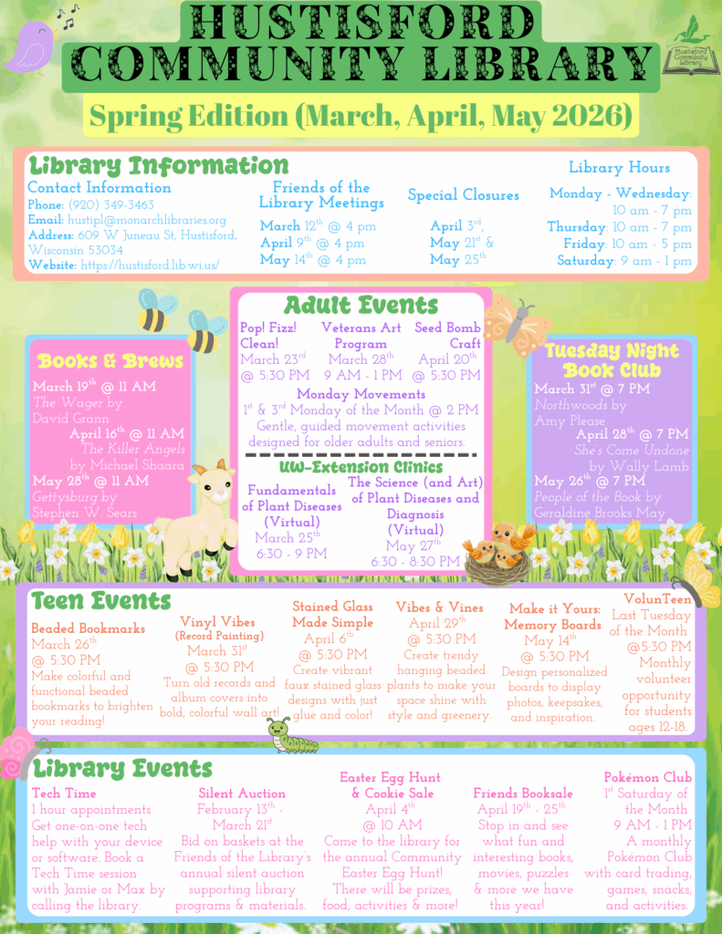 phone: (920) 349-3463 email: hustipl@monarchlibraries.org
